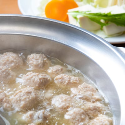 当店では、「はかた地どりスープ」に宮崎県産日向鶏のモモ肉のつくねと「さもんじ秘伝の味 博多よかぽん」「ゆず胡椒」をセットした「さもんじ謹製 博多水炊きセット」もご用意させていただいております。